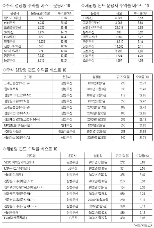 °³º°ÆÝµå Áß¿¡´Â »ï¼ºÅõ½Å¿î¿ëÀÇ ÆÝµåµéÀÌ ¼öÀÍ·ü »óÀ§±ÇÀ» ÈÛ¾µ¾ú´Ù.