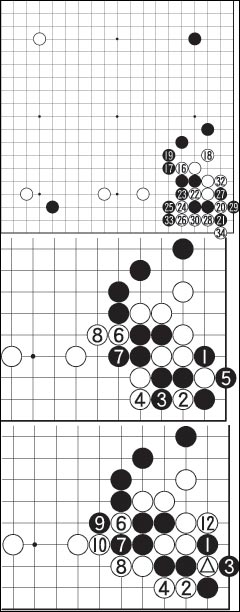 °á±¹ 34±îÁö´Â ÇÊ¿¬À¸·Î, ½Ö¹æ ¸ðµÎ ÇÑ ¼ö·Î »ó´ë¸¦ ÀâÀ» ¼ö´Â ¾ø´Â ÇüŰ¡ ¸¸µé¾îÁ³´Ù. ¸ÕÀú µÎ´Â ÂÊÀÌ ¸ÕÀú µû³»°ÔµÇ´Â ¼±ÆÐ(à»ø®)´Ù. ¾ÈÆÆÀ¸·Î °è»êÇÏ¸é ¾öû³ ¡®ÆøÅº¡¯ÀÌ ÃÊ¹Ý ¿ìÇϱͿ¡ ¸Å¼³µÈ ¼À. ±×·¯³ª Èæ¹é ¸ðµÎ ÀÌ °÷¿¡ 2¼ö¾¿ ÅõÀÚÇÒ ½ÃÁ¡Àº ¾ÆÁ÷ ¾Æ´Ï¾î¼ ÀÌ ÆÐ°¡ ÇâÈÄ ±¹¸é ¿î¿µ¿¡ Å« º¯¼ö·Î µîÀåÇß´Ù. ´Ù¸¸ ÆÐÀÇ ºÎ´ã ¹éÀÌ ´õ Å« ¸¸Å ÈæÀÌ ÆíÇÑ Çü¼¼¶õ Áß·Ð. (31¡¦20)
