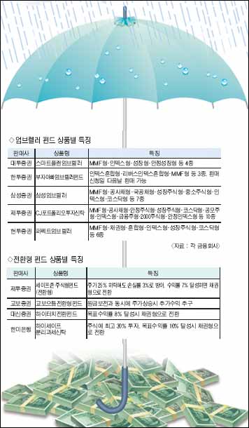 ´Ù¸¸, ÀüȯÇü ÆÝµå ¿ª½Ã ÁֽĿ¡ ÅõÀÚÇÏ´Â ¸¸Å ¾ÕÀ¸·ÎÀÇ ÁÖ°¡ Àü¸Á¿¡ ´ëÇÑ ¿¹ÃøÀÌ ÇʼöÀûÀÌ´Ù. ÁÖ°¡°¡ Ç϶ôÇÒ À§Ç躸´Ù´Â »ó½Â °¡´É¼ºÀÌ ³ô´Ù°í ÆÇ´ÜµÉ ¶§ °¡ÀÔÇÏ´Â °ÍÀÌ ÁÁ´Ù. ¸¸ÀÏ ÁֽĽÃÀåÀÌ °ú¿À» º¸À̰í ÀÖÀ» ¶§ °¡ÀÔÇß´Ù°¡´Â ¸ñÇ¥¼öÀÍ·üÀºÄ¿³ç ¿ø±Ýµµ ¸ø °ÇÁú ¼ö ÀÖ´Ù. ¶Ç ÀüȯÇü ÆÝµå´Â ÁÖ½ÄÅõÀÚºñÁßÀÌ ³·±â ¶§¹®¿¡, ÁÖ°¡°¡ Å« ÆøÀ¸·Î ¿À¸£´Â ´ë¼¼ »ó½Â±â¿¡´Â ÀÏ¹Ý ÁÖ½ÄÇüÆÝµåº¸´Ù ¼öÀÍ·üÀÌ ÀúÁ¶ÇÒ ¼ö ÀÖ´Ù. ´ëÇÑÅõ½ÅÁõ±Ç ³²¸í¿ì ºÎÀåÀº ¡°ÀüȯÇüÆÝµå´Â ¹«Á¶°Ç °í¼öÀÍÀ» Âѱ⺸´Ù´Â ¡®Á¤±â¿¹±Ý±Ý¸®+¥á¡¯ÀÇ ¼öÀÍ·üÀ» Ãß±¸ÇÏ´Â ÅõÀÚÀڵ鿡°Ô ÀûÇÕÇÏ´Ù¡±°í ¸»Çß´Ù.