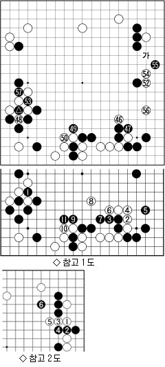 54¶§ 55´Â ¹è¿öµÑ¸¸ ÇÑ ¸ÆÁ¡. ÀÏÁ¾ÀÇ ³¬½Ã¹äÀ̱⵵ ÇÏ´Ù. ¿©±â¼ ¹éÀÌ ¹ß²öÇØ ¡®°¡¡¯·Î °¥¶óÄ¡¸é Âü°í 2µµ 6±îÁö ÀڽŸ¸ ¾ç°ï¸¶·Î ¸ô¸®´Â °Í. 57·Î Áº¯¿¡ ÀÚ¹°ÅëÀ» Àá±Å ±â³ª±ä ÃʹÝÀüÀÌ ³¡³µ´Ù. ¿©±â±îÁö, ¿ìº¯ ÈæÁøÀÌ ÆÄ±«µÈ °Íº¸´Ù´Â Áº¯ »§¶§¸²ÀÌ ´õ µÎÅÍ¿ö ÈæÀÌ ¿ì¼¼¸¦ Àâ¾Ò´Ù´Â Á߯ò. ¹Ý¸é(ÚïØü)À¸·Î 10Áý Á¤µµÀÇ Â÷ÀÌ´Ù. (51¡¦ )