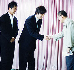 Å齺Ÿ Á¤ÁØÈ£¿Í °øÇüÁøÀÌ Ã⿬ÁßÀÎ ¿µÈ 'µ¿Çع°°ú ¹éµÎ»êÀÌ' Á¦ÀÛÁø°ú ÇÔ²² 23ÀÏ ÅÂdz '¸Å¹Ì'·Î ¼öÇØ¸¦ ÀÔÀº µ¿Çؽÿ¡ ¼öÀçÀÇ¿¬±Ý 1000¸¸¿øÀ» Àü´ÞÇß´Ù.