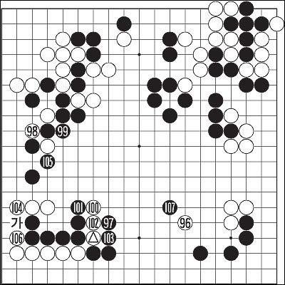 <Á¦9º¸>(96~107)=¾î¶² ÀüÀïÀÌ°Ç ÀüÅõÀÇ ÃÑÈ(õÅûú)·Î ÀÌ·ïÁø´Ù. À¯½ÉÈ÷ »ìÆìº¸¸é ¹¦ÇÑ Çö»óÀÌ ¹ß°ßµÈ´Ù. ¿ì»ó±Í ù ÀüÅõ ¶§ ¹éÀÌ µæÁ¡À» ¿Ã¸®´õ´Ï, µÚÀÌÀº Á»ó±Í ÀüÅõ¼± ÈæÀÌ ¸¸È¸Çß´Ù. ´Ù½Ã ÁÂÇϱͿ¡¼± ¹é±ºÀÌ ±ê¹ßÀ» ²ÈÀº µÚ ¼±¼ö¸¦ ì°Ü 96À» ¼±Á¡Çß´Ù. ½Ã°è ¹Ù´Ã ¹Ý´ë ¹æÇâÀ¸·Î ÇѹÙÄû µ¹¾Æ ¿ìÇϱͷΠ¿Å°ÜºÙÀº »óȲ¿¡¼ ÀüüÀû ÀüȲÀº ¹éÀÇ ¹Ì¼¼ÇÑ ¿ì¼¼.
