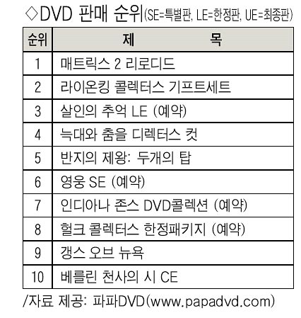 DVD ÆÇ¸Å ¼øÀ§ (9¿ù 29ÀÏ~10¿ù 5ÀÏ Áý°è)
