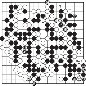 ±×·¸´Ù¸é Èæ 203ÀÌ ³õÀÎ ½ÃÁ¡¿¡¼ ¹é¿¡°Ô µµ´ëü ¹«½¼ ¼ö°¡ ÀÖ´Ù´Â °ÍÀϱî. Âü°í 4µµ ¹é 1·Î ºÙÀÎ µÚ 3À¸·Î ¿õÅ©¸®´Â ±â¸·Èù ¹¦¼ö°¡ ¼û¾îÀÖ¾ú´Ù. 3À¸·Î 6Àº Èæ A·Î °£´ÜÈ÷ ÀâÈù´Ù. Èæµµ 4·Î 6ÀÌ¸é ¹é B·Î »ç´Ï ÀÌ ¼ö°¡ ÃÖ¼±. °á±¹ 5, 7·Î ³Ñ´Â ÆÐ°¡ ¹ß»ýÇÑ´Ù. ´Ü, ÈæÀº ÀÌ ÆÐ¸¦ Áö´õ¶óµµ ½ÇÀüº¸ ¡®³ª¡¯·Î ¶§·Á °£¹ßÀÇ Â÷ÀÌÁö¸¸ ¿ªÀüÀº ¾Æ´Ï´Ù.