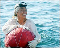 ¿ìµµÀÇ Çϰí¼öµ¿ ¼±ÂøÀå ¾Õ¹Ù´Ù¿¡¼ ÃßÀ§¸¦ ÇìÄ¡¸ç `ÀÎ¾î°øÁÖ' ÃÔ¿µ¿¡ ÇÑâÀÎ Àüµµ¿¬.