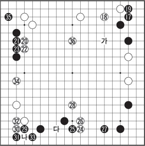 20 ÀÌÇÏ 23±îÁö, ÈæÀº ¼ÓÀÌ ¾²·Áµµ ¾î¿ ¼ö ¾ø´Ù. µÚÀÌÀº 24°¡ ¹Ý»ó(Úïß¾) ÃÖ´ëÀÇ °÷. 27 ÇÑ ÄÀº Á¼Áö¸¸ ´«¸ñÀÚ ±»ÈûÀÇ Çã¼úÇÔÀ» º¸°ÇÏ´Â °ß½ÇÇÑ ÇÑ ¼ö¿´´Ù. 28 ¶§ ÈæÀÌ ¡®³ª¡¯ ´ë½Å 29·Î ±ÞÇÏ°Ô ºÙ¿©°¡ 33±îÁö °áÁ¤ÇÑ °ÍÀº ¹é ¡®´Ù¡¯ÀÇ ±Þ¼Ò ħÀÔÀ» ¹æºñÇÏ·Á´Â ¶æÀÌ´Ù. 34, 35ÀÇ ¸Âº¸±â ´ÙÀ½ 36À¸·Î ǰÀ» ³ÐÈ÷´Ï °©Àڱ⠻óº¯ÀÌ ÆØÃ¢ÇÑ´Ù. ÈæÀº ¾îµð¼ºÎÅÍ ¼ÕÀ» ´ë¾ßÇÒ±î?