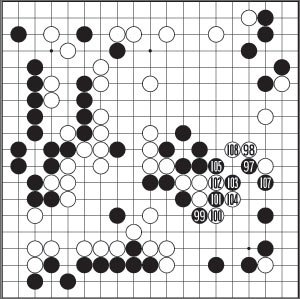 ½ÇÀüÀº ³ÀüÀÇ ÇüÅÂÁö¸¸ ÈæÀÌ ÁÁÀº °á°ú¸¦ ±â´ëÇϱâ´Â Èûµé´Ù. 99ÀÇ 2´Ü Á¥ÈûÀº 101·Î ²÷¾î 106(101ÀÇ °÷ ÀÌÀ½)±îÁöÀÇ È¸µ¹À̸¦ ³ë¸° ³ª¸§´ë·ÎÀÇ ³ëÀÛ(ÖÌíÂ). ±âºÐÀº ÅëÄèÇѵ¥, ±×·¯³ª ½Ç¼ÓÀº ÀüÇô ¾ø´Ù. À̸¥¹Ù ¡®¼¾ç ȸµ¹ÀÌ¡¯ÀÇ ÀüÇüÀ̶õ ¶æ. ¾Æ¹«¸® Çѱ¹ ¶¥¿¡¼ ÇÁ·ÎÀÇ ¿ÊÀ¸·Î °¥¾Æ ÀÔ¾ú¾îµµ Ãâ»ýÁö´Â ¿ª½Ã ¸ø ¼ÓÀÌ´Â °ÍÀϱî. 107À» »©¾Ñ±æ ¼ö´Â ¾ø´Â ³ë¸©À̹ǷΠ±× °÷ºÎÅÍ Â÷ÁöÇßÁö¸¸ 108ÀÇ ±Þ¼Ò¸¦ ´çÇÏ´Ï ¿ª½Ã »ÀÀú¸®´Ù. ÀÌ·¸°Ô µÅ¼± ¿ìº¯ ¹éÀ» º¼¸ð·Î Áß¾ÓÀ» ¼ö½ÀÇϰڴٴ ´çÃÊ °èȹÀÌ ¾î±ß³ª ¹ö·È´Ù. °è¼ÓµÇ´Â Èæ °íÀüÀÇ ¾ç»ó.