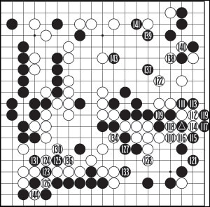 ÀÌ ÂëÇØ¼ µ¹À» °ÅµÖµµ ¹«¹æÇÒÅÙµ¥ ÈæÀº 123, 125ÀÇ ÆÐ¸¦ °áÇàÇÑ´Ù. ±×·¯³ª Áß¾Ó ÈæÀÌ ¿¬°áµÇÁö ¾ÊÀº »óȲ¿¡¼ ÀÌ´Â ¹«¸®ÇÑ ÀúÇ×. 138 ÀÌÇÏ 141±îÁö ¹Ù²ãÄ£ µÚ ¾ÆÁ÷µµ ¡®°¡¡¯, ¡®³ª¡¯ µî Â÷´Ü ¼ö´ÜÀÌ ÀְǸ¸ ¹éÀº 142, 144·Î ¾Æ·¡ÂÊ ÆÐ¸¦ ÇØ¼ÒÇØ ¹ö¸°´Ù. â ¹Ûó·³ ¹ÙµÏ ÆÇ À§¿¡µµ ÇØ°¡ ¼û°í ¶¥°Å¹Ì°¡ ±ò¸®±â ½ÃÀÛÇß´Ù. (120¡¦ , 129 135¡¦123, 132 142¡¦126)