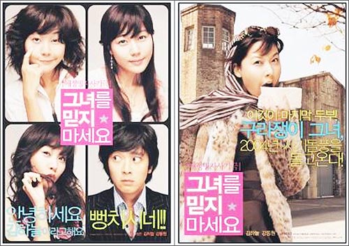 ¿µÈ '±×³à¸¦ ¹ÏÁö ¸¶¼¼¿ä'(°¨µ¶ ¹èÇüÁØ, Á¦ÀÛ ¿µÈ»ç ½Ã¼±)ÀÇ Æ¼ÀúÆ÷½ºÅÍ ¼Ó À̾߱â. '±×³à¸¦ ¹ÏÁö ¸¶¼¼¿ä'´Â ¼ö·ÁÇÑ ¹Ì¸ð¿Í ¾ðº¯À» Áö´Ñ »ç±â²ÛÀÌ ¿äÁ¶¼÷³à·Î º¯½Å, ¼øÁøÇÑ ½Ã°ñû³â ¾àÈ¥ÀÚ·Î Ç༼¸¦ ÇÏ¸ç ¹ú¾îÁö´Â À̾߱⸦ ±×¸° Äڹ̵ð. ±ØÁß ±èÇÏ´ÃÀº °¡¼®¹æ »óÅÂÀÇ »ç±â²Û ¿ªÀ» ¸Ã¾Ò´Ù.