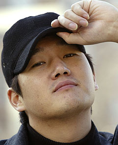 ¼¿ï ±¤È¹®ÀÇ ÇÑ °ø¿ø¿¡¼ À¯ÁöÅÂ(27)¸¦ ¸¸³µÀ» ¶§ ±×´Â °ËÁ¤»ö ¸ðÀÚ¸¦ Ç« ´·¯¾²°í ÀÖ¾ú´Ù. '¿Ãµåº¸ÀÌ' ¾ð·Ð ½Ã»çȸ ¶§µµ ¸ðÀÚ¸¦ ¾²°í ÀÖ´ø °ÍÀÌ ¹®µæ ±â¾ïÀÌ ³ª ½½Â½ ³ó´ãÀ» °Ç³Þ´Ù.