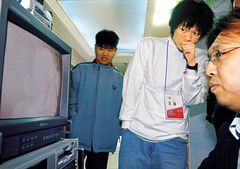 ¡ß ÀÎÁ¤»çÁ¤ º¼ °Í ¾ø´Ù =¿µÈ°¡ »ó¿µµÇ´Â µ¿¾È Á¡(ïÇ)ó·³ »¡°£ ºÒºû 10°³°¡ ¾îµÒ ¼Ó¿¡¼ ±ô¹Ú°Å·È´Ù. ÁøÇà¿ä¿ø 30¸íÀÌ Ä·ÄÚ´õ¸¦ µé°í ±³´ë·Î º¹µµ¸¦ µ¹¸ç Á¶´Â °ü°´À» ¡®»öÃ⡯Çß´Ù. Áöº´µµ ¾ø°í ¸ö»ì ±â¿îµµ ¾ø´Â ÀÏ¹Ý Âü°¡ÀÚ Áß ¸Ç ¸ÕÀú ¡®µü °É¸°¡¯ µµÀüÀÚ´Â ÀÌÁ¤±Ô(21¡¤»ïÀ°´ë 2³â)¾¾. ÀÌ °ÇÀåÇÑ Ã»³âÀº ´ëȸ ½ÃÀÛ 2½Ã°£55ºÐ ¸¸¿¡ µÎ¹øÂ° ¿µÈ ¡®¼±¹°¡¯ Ãʹݺο¡¼ ±ô¹Ú Á¹´Ù °É·È´Ù. ¡°Ä£±¸µé¿¡°Ô ¡®Çü¾Æ´Â ³»³â¿¡ ÇÁ¶û½º °£´Ù¡¯°í ÀÚ¶ûÇߴµ¥, Á¤½ÅÀ» Â÷·Áº¸´Ï ´« ¾Õ¿¡ ÁøÇà¿ä¿øÀÌ¡¦.¡±
