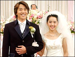 ±è·¡¿ø(¿ÞÂÊ)°ú ¹®±Ù¿µÀÌ È¯ÇÑ Ç¥Á¤À¸·Î °áÈ¥½ÄÀ» Ä¡¸£°í ÀÖ´Ù. /½ºÆ÷Ã÷Á¶¼± ¼ÛÁ¤Çå ±âÀÚ