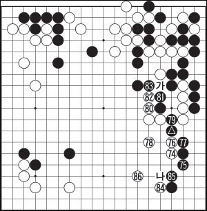 ¡®µé¿©´Ù º¸´Âµ¥ ÀÕÁö¾Ê´Â ¹Ùº¸´Â ¾ø´Ù¡¯´Âµ¥, ¹éÀº »ó½ÄÀ» ¿Ü¸éÇϰí 74¿¡ ºÙ¿©°¬´Ù. ÀÚÀ¯·Î¿î ¹ß»óÀÌ´Ù. 75·Î´Â Âü°í 1µµ 1·Î ¹Ý¹ßÇÏ°í ½ÍÀ¸³ª ¹é 2·Î ¸ÂÁ¥Çô 8¿¡ À̸£¸é ÈæÀº ÀÌÀ» ¼öµµ, ÆÐ¸¦ ÇÒ ¼öµµ ¾ø´Ù. 83±îÁö ¸¶±¸ ¹ö¸° µí ÇÏÁö¸¸ ¹éÀº ¾àÇÑ Áß¾ÓÀ» Á¤ºñÇÏ°í ¼±¼ö¸¦ »Ì¾Ò´Ù. ÀÚ¼¼È÷ º¸¸é ¡®°¡¡¯ÀÇ ³ë¸²µµ ¼û¾îÀÖ´Ù.