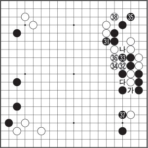 31ÀÌ ¹®Á¦¶õ °ÍÀº ¹é 32, 34ÀÇ Á¶ÀÓÀÌ ¿ö³« ÅëÄèÇϱ⠶§¹®. ÀÌ·¸°Ô µÇ±â Àü ¸ÕÀú Âü°í 1µµ 1, 2¸¦ ±³È¯, 3À» ¼±¼ö·Î ÀÌÀº µÚ 4¸¦ ±â´Ù·Á 5·Î ³ª°¡´Â °Ô ¿ÇÀº Çึ¿´´Ù. ¹éÀÌ Âü°í 2µµ 2ÂÊÀ¸·Î ´Ü¼öÃÄ ¿Ã °æ¿ì°¡ Á» º¹ÀâÇѵ¥, 6À¸·Î Æ÷À§µÅµµ 7 ÀÌÇÏ·Î Á¤ºñÇÑ´Ù. ¼ö¼ø Áß 15·Î A´Â ¹é B·Î »ç¼®Àü¹ý¿¡ °É¸®¸ç, 19·Î C´Â ¹é D·Î ¹éÀÇ ¼±ÆÐ°¡µÈ´Ù.