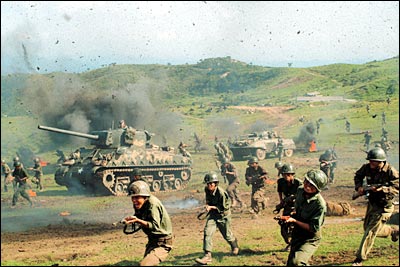 ¿ª»ç¿¡ ±â·ÏµÇÁö ¾ÊÀº °¡»óÀÇ ÀüÅõ Àå¸éÀ» »ó»óÀ¸·Î À籸¼ºÇÑ ÀÌ ½Å¿£ 1500¹ßÀÇ ½ÇÁ¦ °øÆ÷ź°ú 3000¿©¸íÀÇ ¿¢½ºÆ®¶ó, 500¿©¸íÀÇ Àü¹® ½ºÅÏÆ®¸ÇÀÌ ÅõÀԵƴÙ. ƯÈ÷ ÀüÅõ ¸·ÆÇ¿£ ÅÊÅ©¿Í Àå°©Â÷, ½Ö¹ß±â±îÁö µîÀåÇØ °ü°´µéÀº ¾ÐµµÇÑ´Ù. À°¹ÚÀüÀ¸·Î ÆîÃÄÁø ÀÌ ÀüÅõ½Å ÃÔ¿µÀ» ¾ÕµÎ°í ÁÖ¿¬¹è¿ì´Â ¹°·Ð ¿¢½ºÆ®¶óµµ ÃѰ˼ú ÈÆ·ÃÀ» ¹Þ¾Ò´Ù. ´öºÐ¿¡ 3ÁÖµ¿¾È ÁøÇàµÈ ±ä ÃÔ¿µ¿¡¼ ÇÏ·ç Æò±Õ 50¿©°ÇÀÇ ºÎ»ó»ç°í°¡ ÀÕ´Þ¾ÒÀ¸³ª, ÀüüÀûÀ¸·Î Å« ºÎ»ó ¾øÀÌ ÃÔ¿µÀ» ¸¶ÃÆ´Ù.