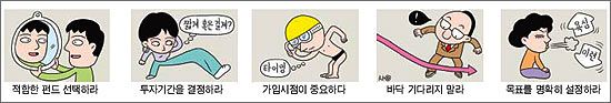 ÅõÀڱⰣ°ú ÀÚ±ÝÀÇ ¿ëµµµµ Áß¿äÇÑ °í·Á»çÇ×ÀÌ´Ù. Çѱ¹ Áõ½Ã´Â ¿ö³« º¯µ¿ÆøÀÌ Å©±â ¶§¹®¿¡, ´©±¸µµ ½±°Ô Àå±âÅõÀÚ¸¦ ±ÇÇÏÁö ¸øÇÑ´Ù. ƯÈ÷ Áö±Ýó·³ ÁÖ°¡°¡ ³ô´Ù°í ÆÇ´ÜµÉ ¶§´Â °¡±ÞÀû ¸ñÇ¥¼öÀÍ·üÀ» ³·Ãß°í, ¾ðÁ¦µç ÆÝµå¿¡¼ ºüÁ®³ª¿Ã ¼ö ÀÖ´Â ÀåÄ¡¸¦ °®Ãç¾ß ÇÑ´Ù.