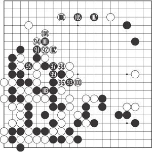 91¶§ ¹éÀº Âü°í 1µµ ó·³ °ø¼¼¸¦ ÃëÇÏ°í ½ÍÁö¸¸ Èæ 4ÀÇ ¸ÆÁ¡ÀÌ ÀÖ¾î Àß ¾ÈµÈ´Ù. 6À¸·Î Â÷´ÜÇϸé Èæ A·Î ÃàÀÌ µÇ±â ¶§¹®. 92´Â ¿ÞÂÊÀ» Æ÷±âÇÏ°í ¿Ü°ûÀ» Ʋ¾î¸·Àº µÚ 105¸¦ Â÷ÁöÇϰڴٴ ¶æÀ̾úÀ¸³ª, ÀÌ°Ô ¶Ç ÀϹæÀû ¼öÀб⿴´Ù. 100±îÁö °ÅÀÇ ÇÊ¿¬Àû ÁøÇà ÈÄ 101·Î ¸ÕÀú ²÷¾îµÎ°í 103À¸·Î ÀâÀº °ÍÀÌ ¹¦¼ö¼ø.