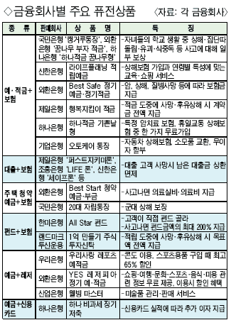 ÀºÇà°ú º¸Çè, Ä«µå µî ´Ù¾çÇÑ ±ÝÀ¶¼ºñ½º¸¦ °áÇÕÇÑ ¡®Ç»Àü »óǰ¡¯ÀÌ ¶ß°í ÀÖ´Ù. Àú±Ý¸®Çö»óÀÌ Áö¼ÓµÇ¸é¼ °¢ ±ÝÀ¶È¸»çµéÀÌ Á㲿¸®¸¸ÇÑ ±Ý¸®¸¸ °¡Áö°í´Â °í°´µéÀ» À¯Ä¡ÇÏ±â ¾î·Æ°Ô µÇÀÚ, ´Ù¾çÇÑ ºÎ°¡¼ºñ½º¸¦ °áÇÕÇÑ Ç»Àü »óǰµéÀ» ³»³õ°í ÀÖ´Â °Í. ƯÈ÷ ÀÛ³â 9¿ùºÎÅÍ ÀºÇà¿¡¼ º¸Çè»óǰÀ» ÆÇ¸ÅÇÏ´Â ¹æÄ«½´¶û½º°¡ ½ÃÇàµÊ¿¡ µû¶ó, Ç»Àü »óǰ °³¹ß°æÀïÀÌ ´õ¿í °¡¼Óȵǰí ÀÖ´Ù.