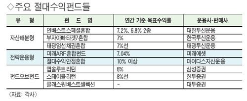 Àý´ë¼öÀÍÆÝµåµéÀº ÁֽĽÃÀå µî ±ÝÀ¶½ÃÀå »óȲ¿¡ µû¶ó ÁÖ½ÄÅõÀÚºñÁßÀ» 10~30% À̳»·Î °¡Á®°¡¸é¼ ź·ÂÀûÀ¸·Î ÀÚ»êÀ» ¹èºÐÇϰųª, ´Ù¾çÇÑ ½Ã½ºÅÛ Æ®·¹À̵ù±â¹ýÀ» Ȱ¿ëÇÏ´Â ¡®ÇìÁöÆÝµå¼º »óǰ¡¯µéÀÌ´Ù.