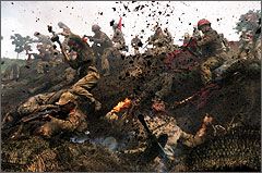 ¡®Å±رâ ÈÖ³¯¸®¸ç¡¯Áß ºÏÇÑ ±ê¹ß ºÎ´ë¿ÍÀÇ ÀüÅõ Àå¸é. °ú°Å 6¡¤25 ¿µÈ¿¡¼ ºÏÇѱºÀº ½ÇÁ¦¿Í ´Þ¸® ¹«Á¶°Ç ÀÛ¾÷¸ð¸¦ ¾´ °ÍÀ¸·Î ¹¦»çÇßÁö¸¸, ¡®Å±ر⡦¡¯´Â ÀÌ »óÅõ¼ºÀ» ±ú°í¡®Ã¶¸ð ¾´ ºÏÇѱº¡¯À» ÇÔ²² µîÀå½ÃÄ×´Ù.