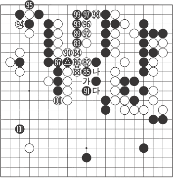 85°¡ ÁÁÀº ÀÀ¼ö. ÀÌ µÚ 90±îÁö´Â °ÅÀÇ ÇÊ¿¬Àε¥ 91ÀÇ º¸°ÀÌ »À¾ÆÇÁ´Ù. ¼Õ »©¸é ¹é ¡®°¡¡¯, Èæ ¡®³ª¡¯, ¹é ¡®´Ù¡¯ÀÇ ¼ö´ÜÀÌ ³²´Â °Í. ¹éÀÌ ¼±¼ö¸¦ Àâ¾Æ 100ÀÇ µÎÅÍ¿î °÷À» Â÷ÁöÇØ¼± ÇÑ ¼û µ¹·ÈÁö¸¸ ÈæÀÇ ¿ì¼¼°¡ ¹«³ÊÁø °Ç ¾Æ´Ï´Ù. 101·Î ÀüÀåÀº ÁÂÇϱͷΠ¿Å°Ü°£´Ù.