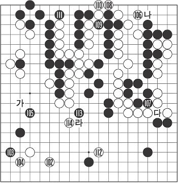 102·Î´Â Âü°í 1µµ ¹é 1ÀÇ ¾Ð¹Úµµ ¶°¿À¸£Áö¸¸ 6±îÁö, º°·Î ½Ç¼ÓÀÌ ¾ø´Ù°í º» °Í °°´Ù. ¡®°¡¡¯°¡ ¾Æ´Ñ 105´Â Áß¾Ó ¹é ´ë¸¶¿¡ ´ëÇÑ °ø°ÝÀ» ¿°µÎ¿¡ µÐ ¼ö. 107Àº ÁýÀ¸·Î´Â ¡®³ª¡¯°¡ ¿ÇÁö¸¸ ¡®´Ù¡¯ÀÇ ²÷À½À» ³ë¸®´Â °ø°ÝÀû ´ëÀÀÀ» ÅÃÇß´Ù.