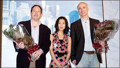 `Åõ¸ð·Î¿ì'ÀÇ Á¦ÀÛÀÚÀÎ ¸¶Å© °íµç(¸Ç ¿ÞÂÊ)°ú °¨µ¶ÀÎ ·Ñ·£µå ¿¡¸Ó¸®È÷°¡ 8ÀÏ ¿ÀÈÄ µµÄì ±×·£µåÇÏ¾æÆ®È£ÅÚ¿¡¼ ¿¸° ±âÀÚȸ°ß¿¡¼ ÀϺ» ¿©¹è¿ì ½º·çŸ ¸ÞÀÌÀ¯·ÎºÎÅÍ È¯¿µ ²É´Ù¹ßÀ» ¹ÞÀº µÚ Æ÷Á ÃëÇß´Ù.