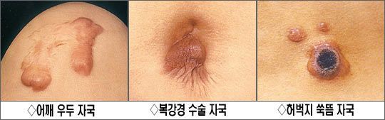¾ó±¼ µîÀ» ºÎµúÇô ÇǺΰ¡ Âõ¾îÁø ÀÚ¸®, °¡½¿À̳ª º¹ºÎ¿¡ ¼ö¼ú¹Þ°Å³ª ħ¡¤¶ä Ä¡·á¸¦ ¹ÞÀº ÀÚ¸®, ¿©µå¸§ÀÌ ³µ´Ù°¡ ¾ø¾îÁø ÀÚ¸®, ½ÉÁö¾î ¸ñ°ÉÀÌ¿¡ °¡½¿ ÇǺΰ¡ ÀÚ±ØÀ» ¹ÞÀº ÀÚ¸®¿¡ ÄÌ·ÎÀ̵尡 »ý±â´Â °æ¿ìµµ ÀÖ´Ù.