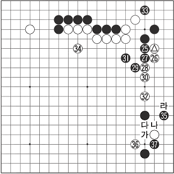 35·Î ¡®°¡¡¯¸é ¹é ¡®³ª¡¯, Èæ ¡®´Ù¡¯, ¹é ¡®¶ó¡¯ ´ÙÀ½ Èæ 37ÀÌ ºÒ°¡ÇÇÇÒ ¶§ ¹éÀÌ ÁÂÇϱͷΠ°£´Ù. ±×·¸´ÙÇØµµ 35´Â ¸Å¿ì °Ý·ÄÇÑ ¼ö. 37 ¶ÇÇÑ Âü°í 3µµÀÇ Æò¹üÀ» °ÅºÎÇÑ °°æÃ¥ÀÌ´Ù. ¸ñÁø¼®Àº ÀÛ½ÉÇÑ µí ¸ö½Î¿òÀ» À¯µµÇϰí ÀÖ´Ù.