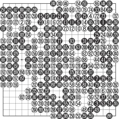 <ÃѺ¸>(1~285)=ÈæÀÌ ¹Ý¸é(ÚïØü) 10Áý ½Â. ´ýÀ» Á¦Çϰí 3Áý ¹ÝÀ» ³²°å´Ù. ¸·ÆÇ ¹éÀÇ ¸ÍÃß°Ý ¼Ó¿¡ Çϸ¶ÅÍ¸é ¡®´Ù µÈ ¹ä¿¡ ÄÚ ºüµå¸± »·¡¯ ÇßÀ¸³ª 217ÀÌ ¸ñÁø¼®À» ±¸ÇØÁÖ¾ú´Ù. 218·Î 255¿¡ µÎ¾î ¹Ý¹ßÇϸé Âü°íµµÀÇ ÁøÇàÀÌ ±â´Ù¸°´Ù.