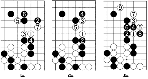 <1µµ>(½ÇÀü ÁøÇà) ¹é 1ÀÌ ¸ð¾çÀÇ ±Þ¼Ò. 2·Î °É¾îÀá±Û ¶§ 3¿¡ ´Â ¼ö°¡ °·ÂÇÏ´Ù. Èæ 4 ÀÌÇÏ·Î ÀúÇ×ÇßÁö¸¸ 5 ¼±¼ö ÈÄ 7·Î Â÷´Ü, ÀÌ ¹éÀ» Æ÷À§ÇÒ ¼ö´ÜÀº ¾ø´Ù. <2µµ> Èæ 2´Â 3, 5¸¦ ´çÇØ ¿ÀÈ÷·Á ÈæÀÌ À§ÇèÇØÁø´Ù. <3µµ> Èæ 2 ¿ª½Ã 9±îÁö ¹éÀÌ ±Í¿¡¼ Å©°Ô »ì¾Æ ³¶ÆÐ´Ù. (141¼ö ³¡ Èæ ºÒ°è½Â)