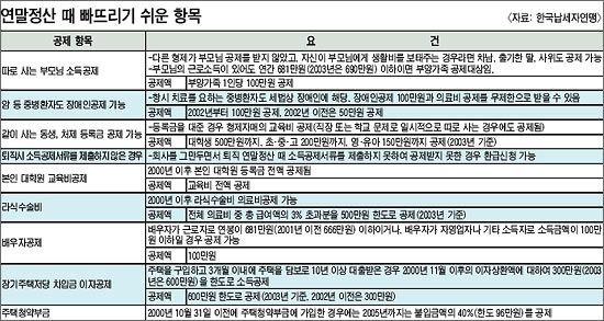 ¶Ç °°ÀÌ »ç´Â µ¿»ýÀ̳ª óÁ¦ÀÇ ´ëÇÐ µî·Ï±ÝÀ» ´ë½Å ³³ºÎÇß´Ù¸é ¿¬°£ 500¸¸¿ø±îÁö ¼Òµæ°øÁ¦¸¦ ¹ÞÀ» ¼ö ÀÖ°í, 2000³â 11¿ù ÀÌÈÄ¿¡ ÁÖÅÃÀ» ´ãº¸·Î 10³â ÀÌ»ó ´ëÃâ¹ÞÀº °æ¿ì ÀÌÀÚ»óȯ¾×¿¡ ´ëÇØ ¿¬°£ 600¸¸¿ø±îÁö ¼Òµæ°øÁ¦¸¦ ¹ÞÀ» ¼ö ÀÖ´Ù. 2000³â 11¿ù ÀÌÀü¿¡ °¡ÀÔÇÑ ÁÖÅÃû¾àºÎ±ÝÀº 2005³â±îÁö ¿¬°£ 96¸¸¿ø Çѵµ ³»¿¡¼ ºÒÀԱݾ×ÀÇ 40%¸¦ °øÁ¦¹ÞÀ» ¼ö ÀÖ´Ù. 2000³â ÀÌÈÄÀÇ ¶ó½Ä¼ö¼úºñ´Â ´Ù¸¥ ÀÇ·áºñ¿Í ÇÕ»êÇØ ÃÑ ±Þ¿©¾×ÀÇ 3%¸¦ ÃʰúÇÒ °æ¿ì, ÃʰúºÐ¿¡ ÇÑÇØ ¿¬°£ 500¸¸¿ø Çѵµ·Î ¼Òµæ°øÁ¦¸¦ ¹ÞÀ» ¼ö ÀÖ´Ù.