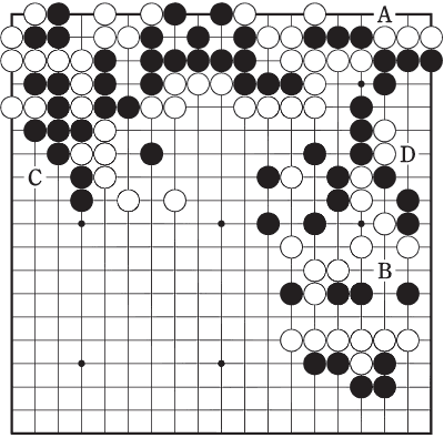 132·Î ÆÐ¸¦ ¶§·Á³½ Àå¸é¿¡¼ ÆÖ°¨À» °è»êÇØº¸ÀÚ. ÈæÀº Âü°íµµ A¿Í B ºÎ±Ù¿¡ °¢ 2°³¾¿ 4°³ Á¤µµÀÇ ÆÖ°¨ÀÌ ÀÖ´Ù. ¹éÀº Cµµ ÆÖ°¨À̰í, D ÀÏ´ë¿£ ¹«ÇÑÁ¤(?)ÀÇ ÆÖ°¨ÀÌ ¹¯Çô ÀÖ´Ù. °í½ÉÇÏ´ø ÈæÀÌ 133À¸·Î ÆÐ¸¦ Æ÷±âÇÑ´Ù. 134·Î »ì¾Æ ÆÐ½Î¿ò Á¾·á. ÈæÀÌ¡®ÀüÀµµ¡®ÀüÅõ¡¯µµ ¸ðµÎ ÆÐÇÑ °á°ú´Ù.