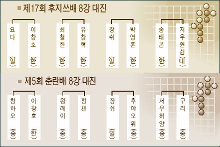 ÇöÀç È¥Àκ¸(Üâì×Û©) ¹æ¾îÀüÀ» Ä¡¸£°í ÀÖ´Â ÀϺ»ÀÇ À彬´Â ÈÄÁö¾²¹è¿Í ÇÔ²² Ãá¶õ¹è 8°Àü¿¡µµ ÃâÀü, °¡Àå Àß ³ª°¡´Â ÀϺ» ±â»çÀÓÀ» È®ÀνÃÄÑÁØ´Ù. ±×´Â Áö³´Þ ¹ú¾îÁø Á¦9ȸ LG¹è¼µµ 8°¿¡ ¾ÈÂøÇÑ ¹Ù ÀÖ´Ù. À̹ø Ãá¶õ¹è¼ÀÇ »ó´ë´Â Áß±¹ÀÇ ½ÅÁø ±â¿¹ Èľ߿ÀÀ§(û×é¥éÔ¡¤22). ÀÌ ¹Û¿¡ ¿Õ·¹ÀÌ(èÝÖð)¿Í Æãþ(ø°ï§), Àú¿ìÇã¾ç(ñ²ùÍåÇ)°ú ±¸¸®°¡ 4° ƼÄÏÀ» ³õ°í °¢°¢ ¡®µ¿Á·»óÀÜ¡¯À» ÆîÄ£´Ù.