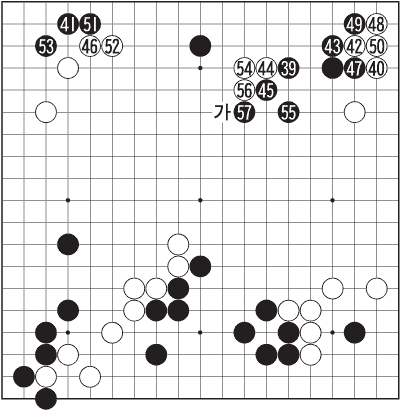 39, 40ÀÇ »ó½ÄÀû ±³È¯ ÈÄ ÈæÀÌ µ¹¿¬ 41·Î ħÅõÇÏÀÚ ¹éµµ 42¸¦ Â÷ÁöÇÏ°í º»´Ù. ½Ö¹æ °íÁý½º·±¡®¸¶ÀÌ ¿þÀÌ¡¯2ÁßâÀÌ´Ù. 44ÀÇ ºÙÀÓÀº º¸Åë »ó´ëÀÇ ¾àÇÑ ¸»À» °ø°ÝÇÒ ¶§ ¾²´Â Á¡. ±×·¸´Ù¸é 42, 43À» ±³È¯ÇØ »ó´ë¸¦ °È½ÃŰ°í ºÙ¿©°£ °ÍÀº Àǹ®À̾ú´Ù. 44·Ð Âü°í 1µµ ¹é 1ÀÌ ¾Ë·ÁÁø ¸ÆÁ¡Àε¥ Áö±ÝÀº 6À¸·Î A¿Í B¸¦ ¸ÂºÁ ¹éÀÌ °ï¶õÇÏ´Ù. ±âÂøÁ¡ ¡ãÀÇ È¿°ú.