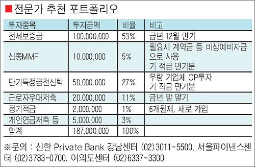 °áÈ¥ 5³âÂ÷ÀÎ ¸Â¹úÀ̺κΠ±è¸ð(36)¾¾´Â Á¶¸¸°£ ¼÷¿ø »ç¾÷ÀÎ ³»Áý ¸¶·ÃÀÇ ²ÞÀ» ½ÇÇöÇÒ °èȹÀÌ´Ù. ±è¾¾ ºÎºÎ°¡ ³»Áý ¸¶·Ã ½Ã±â·Î »ý°¢Çϰí ÀÖ´Â °ÍÀº ¿Ã ¿¬¸»À̳ª ³»³â ÃÊÂë. º¸Áõ±Ý 1¾ï¿øÀÇ Àü¼ÂÁý ¸¸±â°¡ ¿¬¸»Âë µ¹¾Æ¿À´Â µ¥´Ù, ¿äÁò ºÎµ¿»ê ½ÃÀå ºÐÀ§±â·Î ºÁ¼ ±»ÀÌ ³»Áý¸¶·ÃÀ» ¼µÎ¸¦ Çʿ䰡 ¾ø°Ú´Ù´Â ÆÇ´Ü¿¡¼´Ù. ±è¾¾ ºÎºÎ´Â Àü¼¼º¸Áõ±Ý ¿Ü¿¡ ¾Ë¶ãÈ÷ ¸ð¾Æ¿Â 8000¸¸¿ø °¡·®ÀÇ Àû±ÝÀÌ ÀÖ´Ù. À̵éÀº È¿°úÀûÀÎ ³»Áý ¸¶·Ã ¹æ¾È°ú ºÎÁ·ÀÚ±ÝÀÇ ´ëÃâ¹æ¾È, ±×¸®°í ¾ÕÀ¸·Î Àڱݰü¸® ¹æ¾È µî¿¡ ´ëÇØ ¹®ÀÇÇØ¿Ô´Ù.