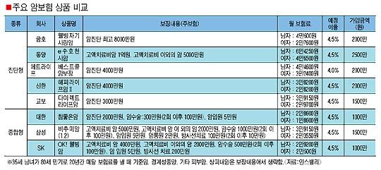 µÑ°, Áø´ÜÇü°ú Á¾ÇÕÇü Áß º»Àο¡°Ô ÀûÇÕÇÑ »óǰÀ» Àß °ñ¶ó¾ß ÇÑ´Ù. ÀϹÝÀûÀÎ ¾Ï¿¡ ´ëÇÑ º¸ÀåÀ» ¹ÞÀ¸·Á¸é 4000¸¸¿ø Á¤µµ¸¦ ¹ÞÀ» ¼ö ÀÖ´Â Áø´ÜÇü¿¡ °¡ÀÔÇÏ´Â °ÍÀÌ Àû´çÇÏ´Ù. ±×·¯³ª °í¾×¾Ï µî Ä¡·á ±â°£ÀÌ ±æ°í ¼ö¼ú, ÀÔ¿ø µîÀÌ ¸¹ÀÌ ¹ß»ýÇÏ´Â ¾Ï¿¡ ´ëÇØ¼ ÁýÁßÀûÀ¸·Î º¸ÀåÀ» ¹ÞÀ¸·Á¸é Á¾ÇÕÇü °¡ÀÔÀÌ À¯¸®ÇÏ´Ù.