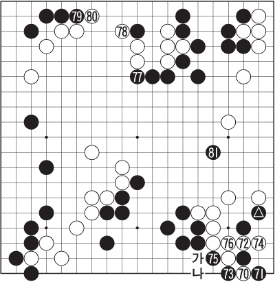 Èæ ¡ã¿¡ ¿Õ¹Ö¿ÏÀº ´Ù ÀоîµÎ¾ú´Ù´Â µí Áï°¢ 70¿¡ Á¥Èù´Ù. 76±îÁö ½Ö¹æ ³ëŸÀÓ ÇàÁø. ±×·± µÚ ÈæÀº ¼ÕÀ» »°´Ù. ÀÌ ÈÄ ¹é¡®°¡¡¯¸é ¹°·Ð¡®³ª¡¯ÀÇ ÆÐ·Î ¹Þ´Â´Ù. ÀÌ ÀÚü·Î ÈæÀÌ ¼±¼ö 5Áý °¡·®À» ì±ä °á°ú¿©¼ Àü°ú°¡ ©Çß´Ù.