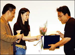 ¹ÚÂù¿í °¨µ¶(¿ÞÂÊ)°ú Å齺Ÿ ÀÌ¿µ¾Ö(°¡¿îµ¥)°¡ 28ÀÏ Á¦3ȸ ¹ÌÀå¼¾ ´ÜÆí¿µÈÁ¦ Æó¸·½Ä¿¡¼ ¿µÈ `Àý±Í'·Î Àý´ë¾Ç¸ù ºÎ¹® ÃÖ¿ì¼öÀÛǰ»óÀ» ¼ö»óÇÑ ¹Ú½Ã¿ø °¨µ¶¿¡°Ô ½Ã»óÇϰí ÀÖ´Ù.¡¡/½ºÆ÷Ã÷Á¶¼± ±Ç¿µÇÑ ±âÀÚ