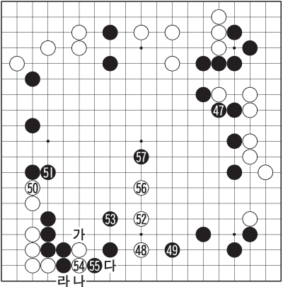 53 ¶§ 54°¡ Àû½ÃÀÇ ÀÀ¼ö ŸÁø. ÈæÀÌ ¡®°¡¡¯, ¡®³ª¡¯ ¾î´À ÂÊÀ¸·Î Á¥Çôµµ ¹é ¡®´Ù¡¯¸é ¾ÈÇü(äÑû¡)ÀÌ º¸ÀåµÈ´Ù. ÈæÀº ¹é ¡®¶ó¡¯ÀÇ ³ÑÀ½À» »·È÷ º¸¸é¼µµ 55·Î Â÷´Ü, ÇÏ Áß¾ÓÂÊ °ø°Ý¿¡ ¡®¿Ã ÀΡ¯ÇÒ °ÍÀ» ¼±Æ÷Çß´Ù. ±¤´ëÇÑ ÈæÇØ(ýÙú) º¹ÆÇ¿¡ °í¸³µÈ ¹é 3Á¡ÀÇ À¯¿¬ÇÑ ¼ö¿µ ¼Ø¾¾¸¦ °¨»óÇÒ Â÷·Ê°¡ ¿Ô´Âµ¥¡¦.