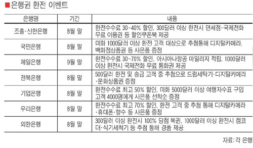 ¿©¸§ ÈÞ°¡Ã¶À» ¸ÂÀÌÇØ ½ÃÁß ÀºÇàµéÀÌ È¯Àü(üµï±) °í°´ Àâ±â¿¡ ÇÑâÀÌ´Ù. ȯÀü ¼ö¼ö·á ¿ì´ë´Â ¹°·Ð, ¿©ÇàÀÚº¸Çè ¹«·á °¡ÀÔ, ±¹Á¦ÀüÈ ¹«·á ÀÌ¿ë±Ç µî ºÎ°¡ ÇýÅõµ ½ò½òÇÏ´Ù.