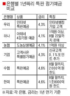 ÀºÇàÀÌ ±Ý¸®¸¦ 4% ÀÌ»óÀ¸·Î ³ô¿© ÇѽÃÀûÀ¸·Î ÆÇ¸ÅÇÏ´Â ¡®Æ¯ÆÇ ¿¹±Ý¡¯ÀÌ ºÒƼ³ª°Ô ÆÈ¸®°í ÀÖ´Ù. Àú±Ý¸® ±âÁ¶°¡ Áö¼ÓµÇ°í ÀÖ´Â µ¥´Ù ºÎµ¿»ê, Áõ½Ã¸¶Àú ¾à¼¼¸¦ º¸¿© °¥ °÷À» ÀÒÀº ÀÚ±ÝÀÌ ´Ã¾î³ª°í Àֱ⠶§¹®ÀÌ´Ù.