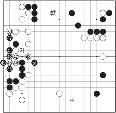 41, 43, 45·Î ±â¾î ³ÑÀº ¸ð½ÀÀº ¾Æ¹«·¡µµ Á» ±¼¿åÀûÀÌ´Ù. 50À¸·Î ¸·¾Æ Èæ ´ë¸¶´Â ÀÏ´Ü ¹Ì»ý¸¶·Î ¶¹À¸¸ç, À̰ÍÀÌ ÇâÈÄ ½Ö¹æ Àü·«ÀÇ Áß¿ä º¯¼ö·Î µîÀåÇÑ´Ù. ¼±¼ö¸¦ »ÌÀº ¹éÀÌ ´Þ·Á°£ °÷Àº 52. ¹®Á¦ÀÇ »óº¯¿¡ ¸¶Ä§³» ÆøÅºÀÌ ÅõÇϵǴ ¼ø°£ÀÌ´Ù. ÈæÀ¸·Î¼± ¡®³ª¡¯µµ ¸ø ì±â°í Áº¯Àº Áº¯´ë·Î ¸ø »ê µ¥´Ù 52±îÁö ¸Â¾Æ¼± ´©°¡ º¸¾Æµµ ¹éÀÇ ¿ì¼¼°¡ Áö¼ÓµÇ´Â ¸ð½À. 52¿¡ ´ëÇÑ ÈæÀÇ Å¸°³Ã¥Àº?