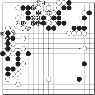 74, 76Àº °í½ÉÀÇ Å¸°³Ã¥. µÎ Á¡À» ¹ö¸²µ¹ »ï¾Æ ¼±¼ö·Î »óº¯À» »ì°í ¡®°¡¡¯ÀÇ ¾àÁ¡À» º¸°ÇÏ·Á´Â ¶æÀÌ´Ù. ÀÌÁ¨ 79·Î ¡®³ª¡¯¿¡ Ä¡ÁßÇØµµ Âü°í 3µµÃ³·³ ÀâÁö ¸øÇÑ´Ù. ¿©±â±îÁö, ¹éÀÌ »óº¯Àº ²£Áö¸¸ ÈæÀÌ µÎÅÍ¿öÁøµ¥´Ù Á»ó ¹é±Í¿¡ ¸ÀÀÌ ³²¾Æ ¿ªÀüÀ̶õ Áß·Ð. ±×·± ºÐÀ§±â°¡ 84ÀÇ ¡®ÆøÅõ¡¯·Î À̾îÁö¸ç ¹ÙµÏÀº °Ý·ÄÇÑ ¼Ò¿ëµ¹ÀÌ·Î ºüÁ®µç´Ù.