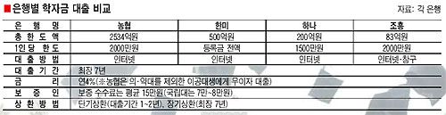 ÇϳªÀºÇàÀº Áö³ 2ÀϺÎÅÍ 1Àδç 1500¸¸¿ø±îÁö ÇÐÀÚ±ÝÀ» ºô·ÁÁÖ°í ÀÖ´Ù. Á¶ÈïÀºÇ൵ Áö³ 9ÀϺÎÅÍ 1Àδç 2000¸¸¿ø Çѵµ¿¡¼ ÇÐÀÚ±ÝÀ» ´ëÃâÇØ ÁØ´Ù. ÀüºÏÀºÇ൵ Áö³ 6ÀϺÎÅÍ µµ³» ´ëÇÐ(¿ø) ÀçÇлýÀ» ´ë»óÀ¸·Î ÇÐÀÚ±Ý ´ëÃâ¿¡ ³ª¼¹´Ù.