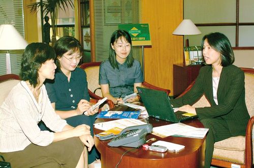 Á¶¼±°æÁ¦ ÁֺαâÀÚµéÀÌ Áö³ 13ÀÏ ¼¿ï À»Áö·Î ÇϳªÀºÇà º»Á¡ Çϳª°ñµåŬ·´À» ã¾Æ ÀçÅ×Å© »ó´ãÀ» ¹Þ¾Ò´Ù. »çÁø ¿ÞÂʺÎÅÍ ÁֺαâÀÚ ÀÌÀç¿Ï, ±èöÈñ, Á¶Àº¿µ¾¾, ÇϳªÀºÇà °ÁöÇö ÆÀÀå.
