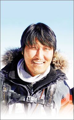 8¿ùÀε¥µµ Ç® ÇÑ Æ÷±â, ±×´Ã ÇÑ Á¡ ¾ø´Â ´« »ç¸·ÀÌ ³¡¾øÀÌ ÆîÃÄÁø ³²±ØÀ» ±×´ë·Î ¿Å°Ü ³õÀº µíÇÑ ´ºÁú·£µå ³²¼¶ÀÇ ½º³ëÆÊ(snow farm). ÇØ¹ß 1700mÀÇ ¼³¿øÀÌ´Ù. ±¹³» ÃÖÃÊ·Î ³²±ØÅ½ÇèÀ» ´Ù·é ¿µÈ ¡®³²±ØÀϱ⡯(°¨µ¶ ÀÓÇʼº)¿¡¼ ³²±Ø ¡®µµ´Þ ºÒ´ÉÁ¡¡¯À» ã¾Æ ³ª¼´Â ´ëÇѹα¹ ŽÇè´ëÀå ÃÖµµÇüÀ¸·Î ºÐÇÑ ¼Û°È£(37)´Â °Ë°Ô ±×À»¸° ÇÛ¾¦ÇÑ ¾ó±¼ À§¿¡ µë¼ºµë¼º ¼ö¿°ÀÌ ÀÚ¶ó ÀÖ¾ú´Ù.