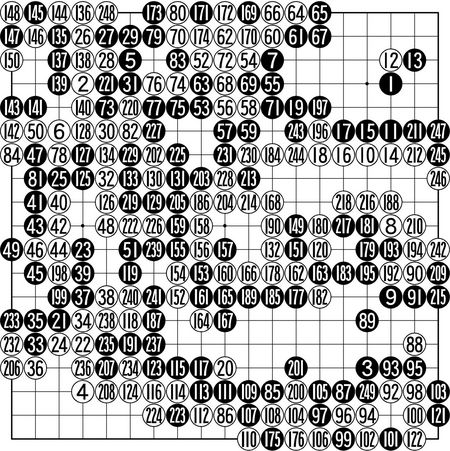 ¡´ÃѺ¸¡µ(1~249)=¸¶Áö¸· 215¿¡ ´ëÇØ »çÁ·(Þïðë)À» ºÙÀδÙ. ÀÌ ¼ö·Î 218 ÀÚ¸®, Áï Âü°íµµ ¡ã¿¡ µÎ¸é ¹é 1, 3ÀÇ ÆÐ°¡ ¹ß»ýÇÑ´Ù. ÀÌ ÆÐ´Â ¹éÀÌ À̱â±â ¾î·ÆÁö¸¸ ÈæÀ¸·Î¼± ¿ª½Ã ¸ö Á¶½ÉÇÑ ¼ö. Á¾¹Ý µé¾î ÈæÀº ¸öÁ¶½ÉÀ» °ÅµìÇØ ´õ ÀÌ»óÀÇ ¿ªÀüÀ» Çã¿ëÇÏÁö ¾Ê¾Ò´Ù.