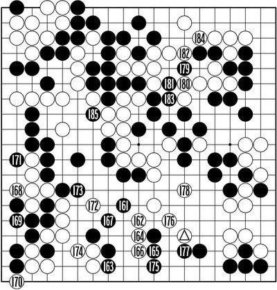 179ºÎÅÍ 184±îÁöµµ ÀÌ·± Á¤µµ. ±×¸®°ï 185°¡ ¸¶Áö¸· ¼ö°¡ µÆ´Ù. ¿Õ¸®Ã»ÀÌ ÀâÀº µ¹ Çϳª¸¦ ÆÇ À§¿¡ ¿Ã·Á ³õÀ½À¸·Î½á ÆÐ¹è¸¦ ½ÃÀÎÇÑ´Ù. ³¡±îÁö °è°¡ÇÑ´Ù¸é ¹Ý¸é(ÚïØü) 12~13Áý Á¤µµÀÇ Â÷ÀÌ¿´´Ù. ¿Õ¸®Ã»ÀÇ ´ë ÀÌâȣ 6¿¬ÆÐ(Ö§ø¨)°¡ È®Á¤µÇ´Â ¼ø°£À̾ú´Ù.