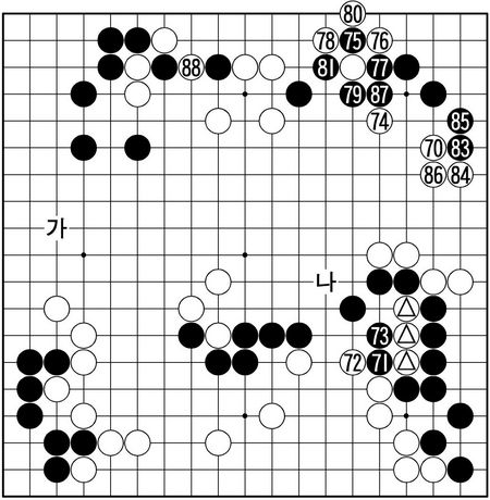 70Àº õ±ÝÀÇ È£Ã³Áö¸¸ ¹é ¡ã¼® Á¡µµ ¿ä¼®(é©à´)ÀÌ´Ù. ½Å±âÇÑ °ÍÀº 70µµ Â÷ÁöÇϰí ÀÌ ¼® Á¡±îÁö »ì¸®´Â ¾Ç¶öÇÑ(?) ¼ö´ÜÀÌ ÀÖ¾ú´Ù´Â Á¡. Âü°í 1µµ ¹é 1ÀÇ °Ç³ÊºÙÀÓÀÌ ¸ÆÁ¡À¸·Î, 7 ´ÙÀ½ Èæ A°¡ ºÒ°¡ÇÇÇÒ ¶§ ¹é B¸¦ Â÷ÁöÇßÀ¸¸é ¡ã¼® Á¡±îÁö ±¸ÃâÇÒ ¼ö ÀÖ¾ú´Ù. ÇÏÁö¸¸ ¼±¼ö¸¦ »Ì¾Æ 74·Î ¿ì»ó±Í¸¦ ¾Ð¹ÚÇØ °¡¸é¼ ÄôÁ¦´Â ÀÌ°É·Î ÃæºÐÇϴٴ ǥÁ¤ÀÌ´Ù.